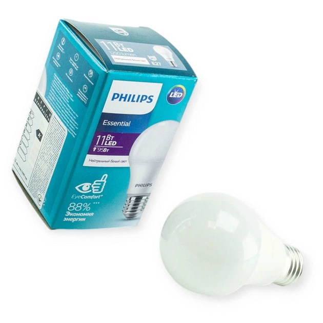 Лампа побутова діодна 220V E27 11W A60 4000K PHILIPS