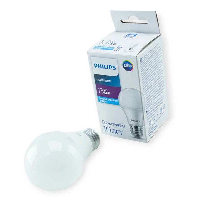 Лампа побутова діодна 220V E27 9W A60 6500K PHILIPS