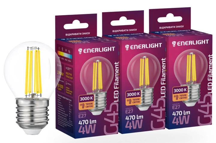 Світлодіодна лампа ENERLIGHT Filament G45 4Вт 3000К Е27 3 шт