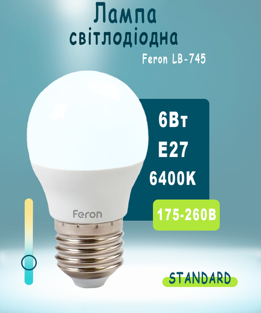Світлодіодна лампа Feron LB745 E27 6W 6400К (холодний білий) (LB745/6400)