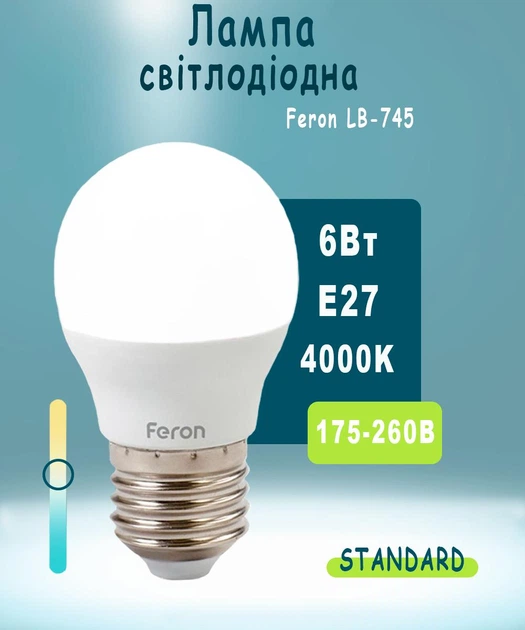 Світлодіодна лампа Feron LB-745 E27 6W 4000K для загального та декоративного освітлення