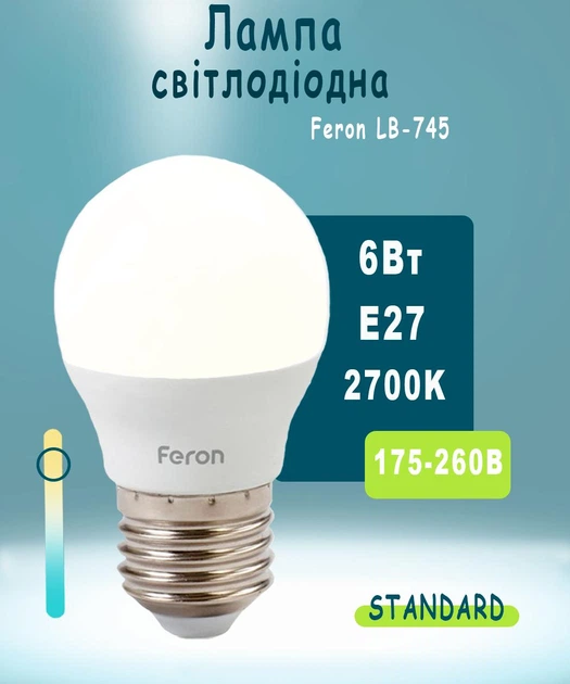 Світлодіодна лампа Feron LB745 E27 6W 2700К (теплий білий) (LB745/2700)