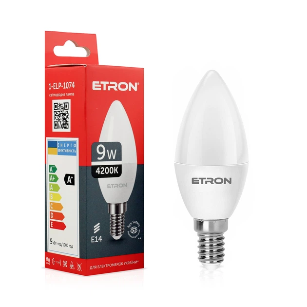 Світлодіодна лампа ETRON C37 9W 4200K E14 1-ELP-1074