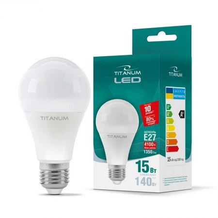 LED лампа TITANUM A65 15W E27 4100K 220V (ТL-A65-15274)