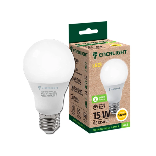 Лампа світлодіодна Enerlight A65 15W E27 3000K