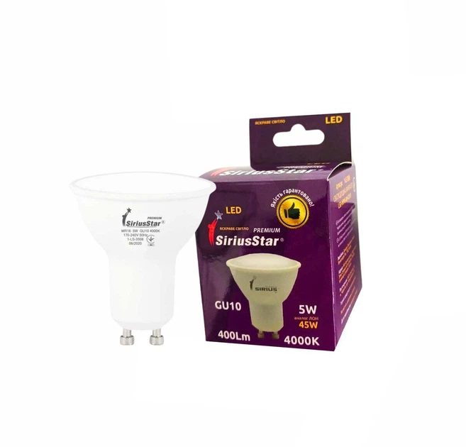 Світлодіодна лампа SIRIUSSTAR 3508 MR16 220V 5W 4000K- GU10
