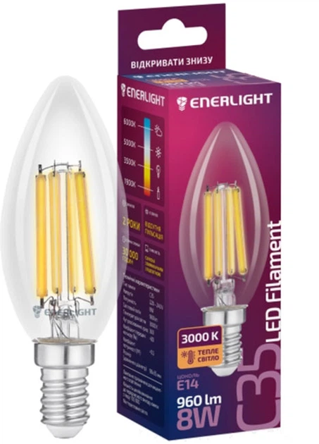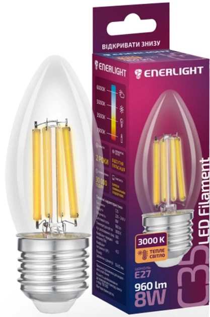 Світлодіодна лампа ENERLIGHT Filament С35 8Вт 3000К Е27 (C35E278FILWGL)