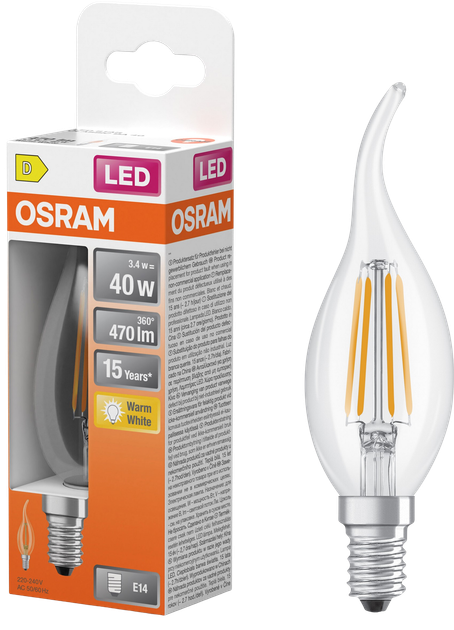 Світлодіодна лампа OSRAM Filament BA40 3.4W 470Lm 2700K E14 (4099854468810)