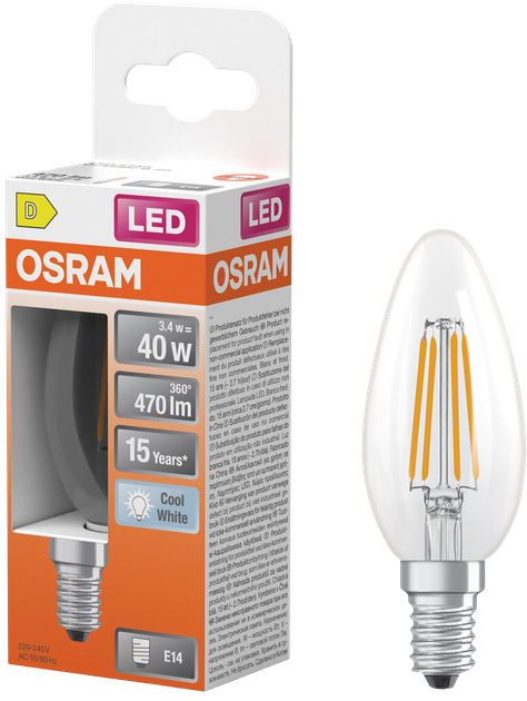 Світлодіодна лампа OSRAM Filament B40 3.4W 470Lm 4000K E14 (4099854467189)