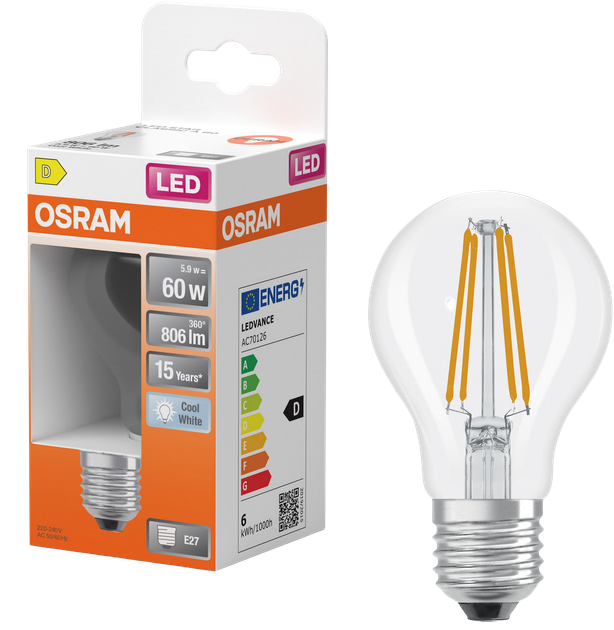 Світлодіодна лампа OSRAM Filament A60 5.9W 806Lm 4000K E27 (4099854467998)