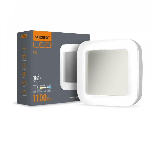 LED світильник ART IP65 квадратний VIDEX 15W 5000K