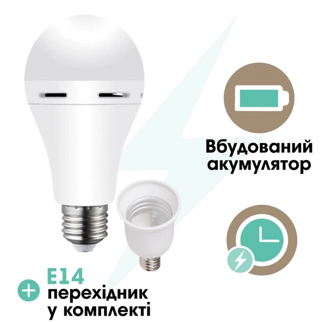 Світодіодная лампа с акумулятором автономная аварийная Smart LED 7W 4100К E27/Е14 (Перехідник)