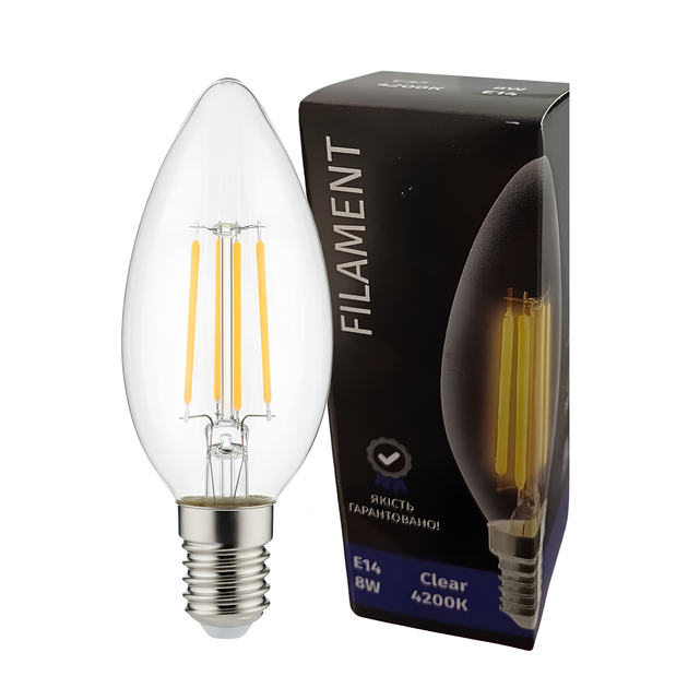 LED лампа 8W Filament clear C37 цоколь E14 нейтральне світло 4200K SiriusStar 4202