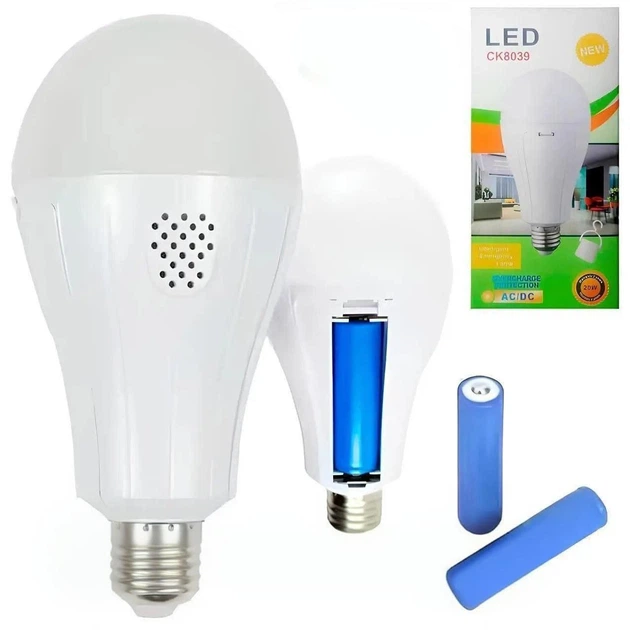 Світлодіодна лампа 20 Вт CK8039 з 2 акумуляторами 18650 E27 біле світло