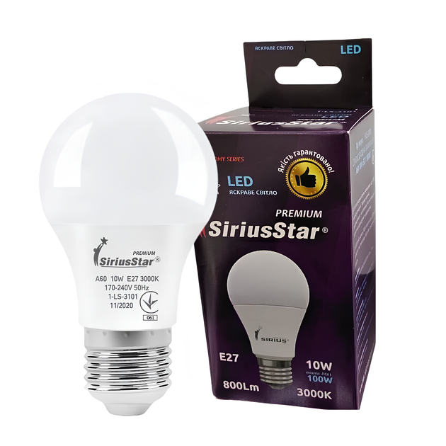 LED-лампа 10W A60 патрон E27 з теплим світлом 3000K SiriusStar 3101