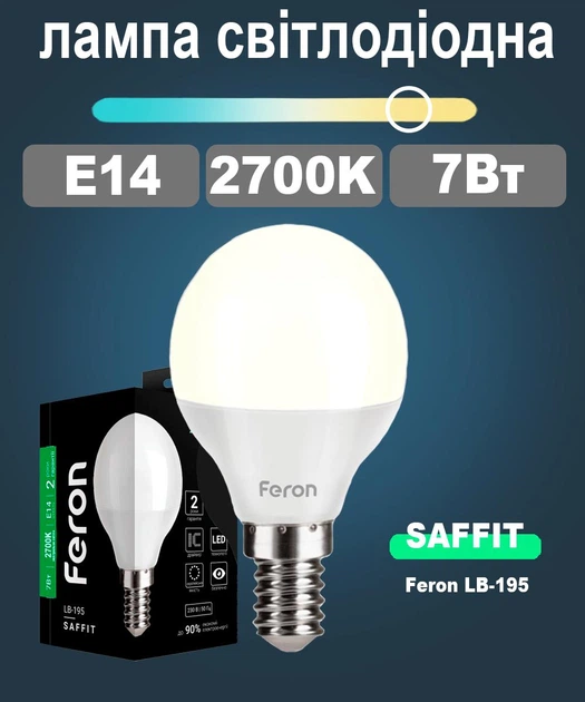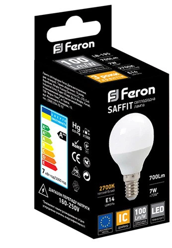 Світлодіодна лампа G45 куля FERON LB-195 7W E27 2700K SAFFIT