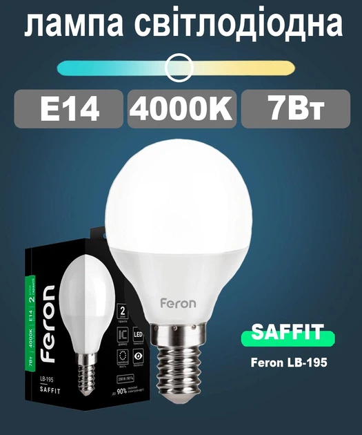 Світлодіодна лампа Feron LB195 E14 7W 4000K типу P45 "шар" для загального та декоративного освітлення
