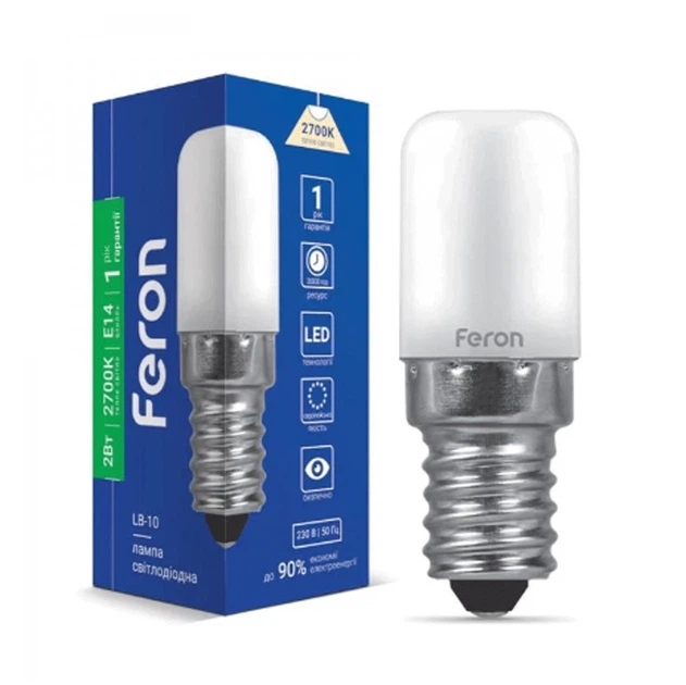 Світлодіодна лампа E14 Feron LB-10 2Вт 4000K Т26 для холодильників 6341