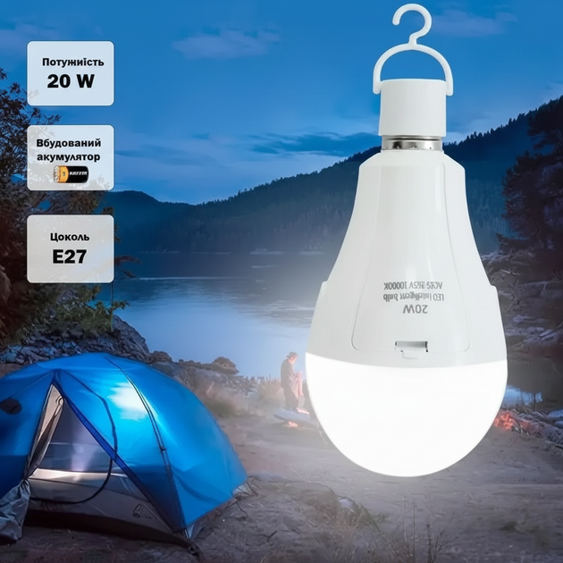 Лампа Аварійна Автономна 2в1 (Світильник) | E27, 20 Вт / 3.5 Вт, 4 год роботи, З двома акумуляторами 18650