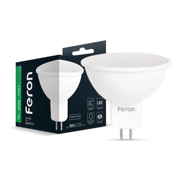 Світлодіодна лампа 7W Feron з цоколем G5.3 MR16 нейтральне світло 4000K LB-196