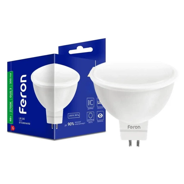 Світлодіодна лампа 4W Feron з цоколем G5.3 MR16 тепле світло 2700K LB-240