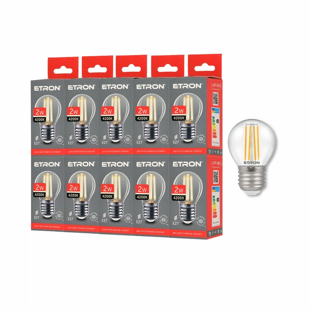 Комплект філаментних ламп ETRON Filament 10 шт 1-EFP-200 2W 4200K G45 E27