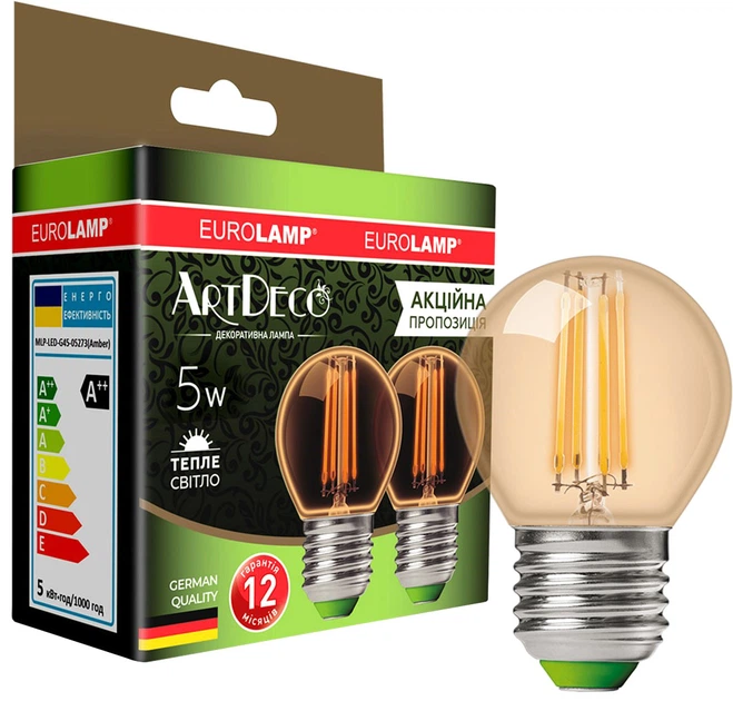 Філаментна лампа EUROLAMP LED G45 5W 530 Lm E27 3000K deco 2шт