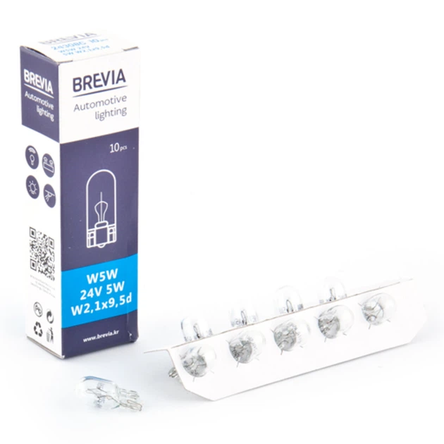 Лампа розжарювання Brevia W5W 24V 5W для авто біле світло 10 шт заміна штатних ламп освітлення (DO-LI33S)