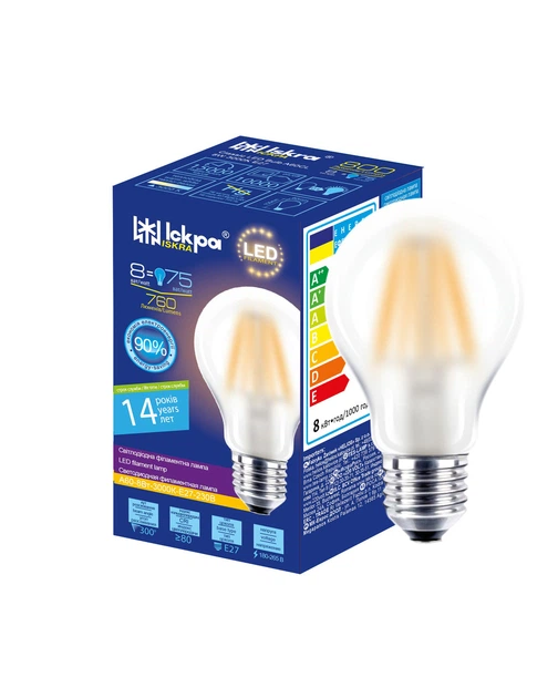 Світлодіодна лампа LED Filament A60 8W 3000K E27 (прозора) ТМ "Іскра"