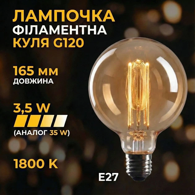 Вінтажна ретро лампа Crown LED EL026, 3.5W, лампа Едісона, світлодіодна, енергозберігаюча, E27, 1800K