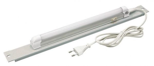 ерверних шаф (підлогових і настінних) та відкритих 19" стійок. Встановлюється на 19-дюймові монтажні профілі та займає 1U. Світлодіодна лампа на 230 В, 5 Вт забезпечує рівномірне й енергоефективне підсвічування обладнання; на корпусі лампи є зручний вимикач живлення. Матеріал монтажної шини: