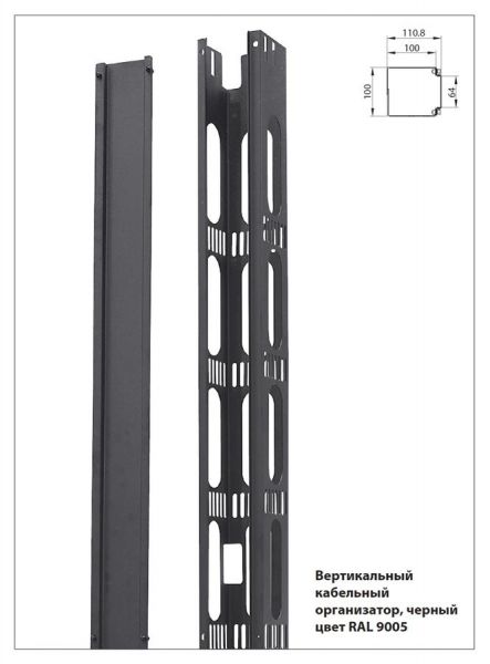 Кабельный организатор zpas 42u, вертикальный, черный w-6186-22-03-161