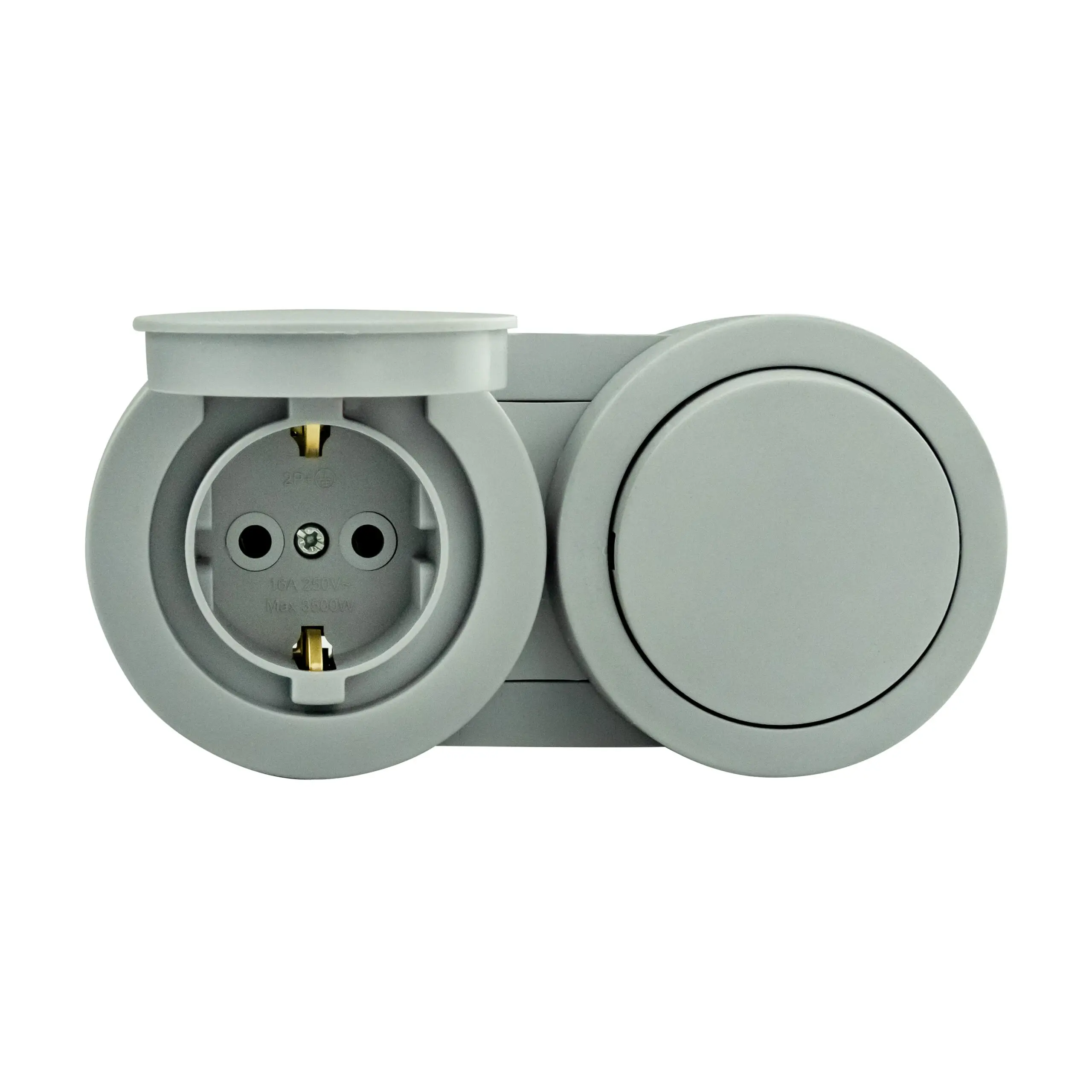 Розетка Ovivo Electric xOne з заземленням та кришкою + вимикач 1-й сіра
