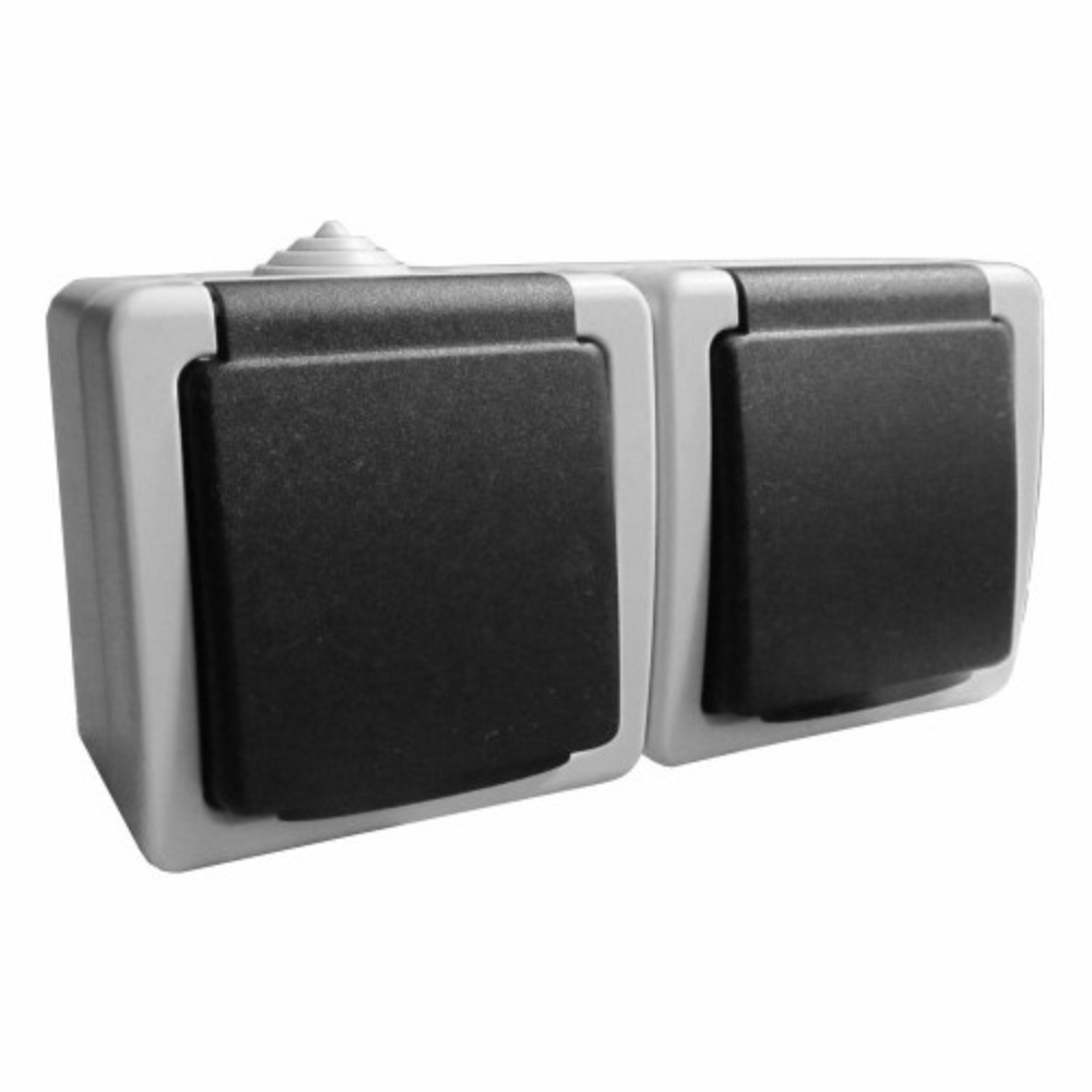 Розетка подвійна Титан із заземленням біло-чорна (73688623)