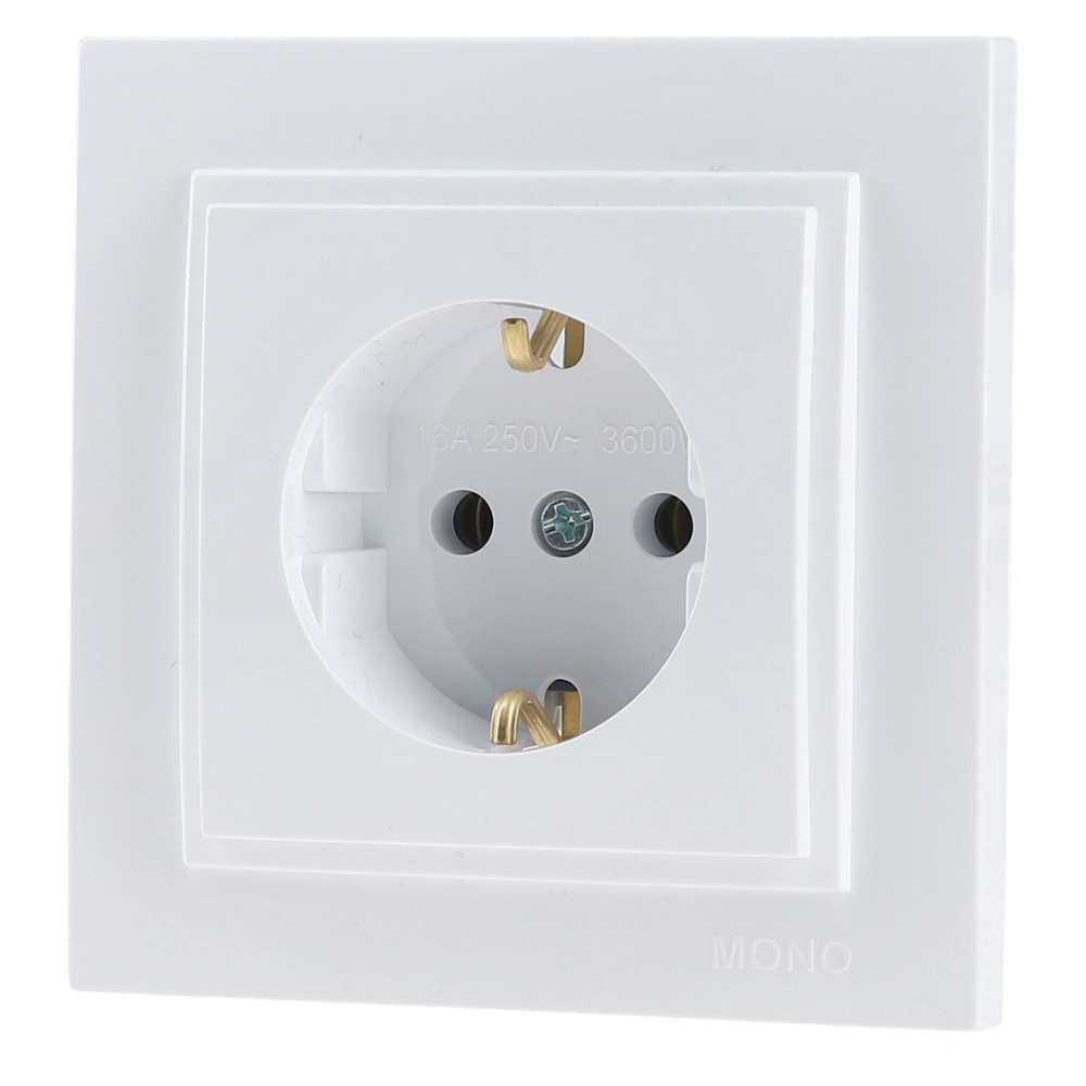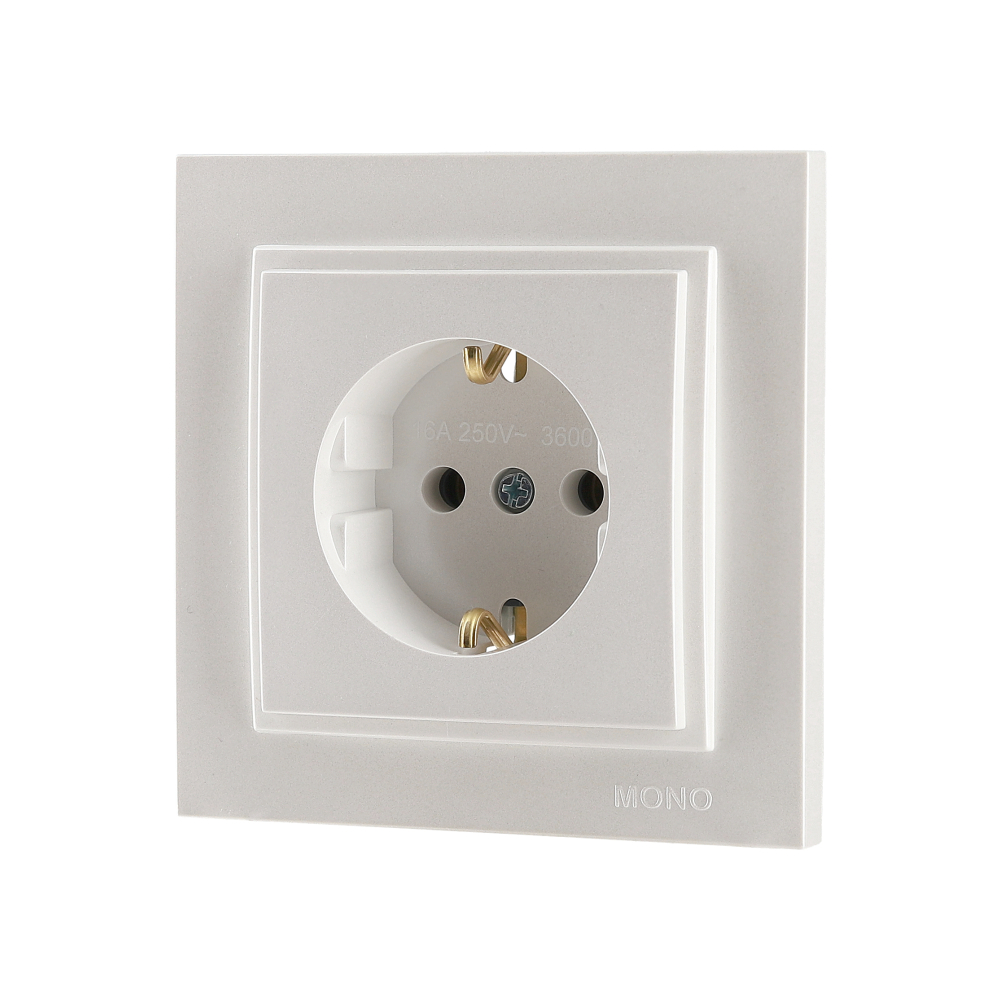 Тип виробу: Розетка; Тип розетки: Одинарна,З заземленням; Кількість постів / модулів: 1 пост; Вологозахист (IP): IP20; Вхідна напруга, В: 220–250; Комплектація: Повний комплект (механізм + рамка + клавиша/накладка); Бренд: Mono Electric; Глибина, мм: 52; Колір: Білий, сірий; Країна реєстрації бренду: Туреччина; Країна виробництва: Туреччина; Матеріал: ABS пластик; Монтаж: Прихований (вбудований); Номінальна потужність, Вт: 3680; Серія: Despina; Ширина, мм: 85; Сила струму, А: 16