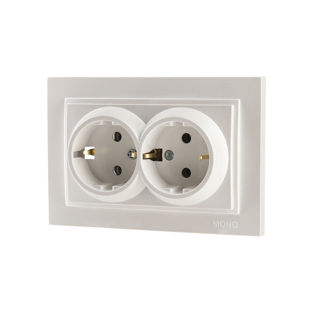 Тип виробу: Розетка; Тип розетки: Подвійна,З заземленням; Кількість постів / модулів: 2 пости; Вологозахист (IP): IP20; Вхідна напруга, В: 220–250; Комплектація: Повний комплект (механізм + рамка + клавиша/накладка); Бренд: Mono Electric; Глибина, мм: 50; Колір: Перлина; Країна реєстрації бренду: Туреччина; Країна виробництва: Туреччина; Матеріал: ABS пластик; Монтаж: Прихований (вбудований); Номінальна потужність, Вт: 3680; Серія: Despina; Ширина, мм: 127; Сила струму, А: 16