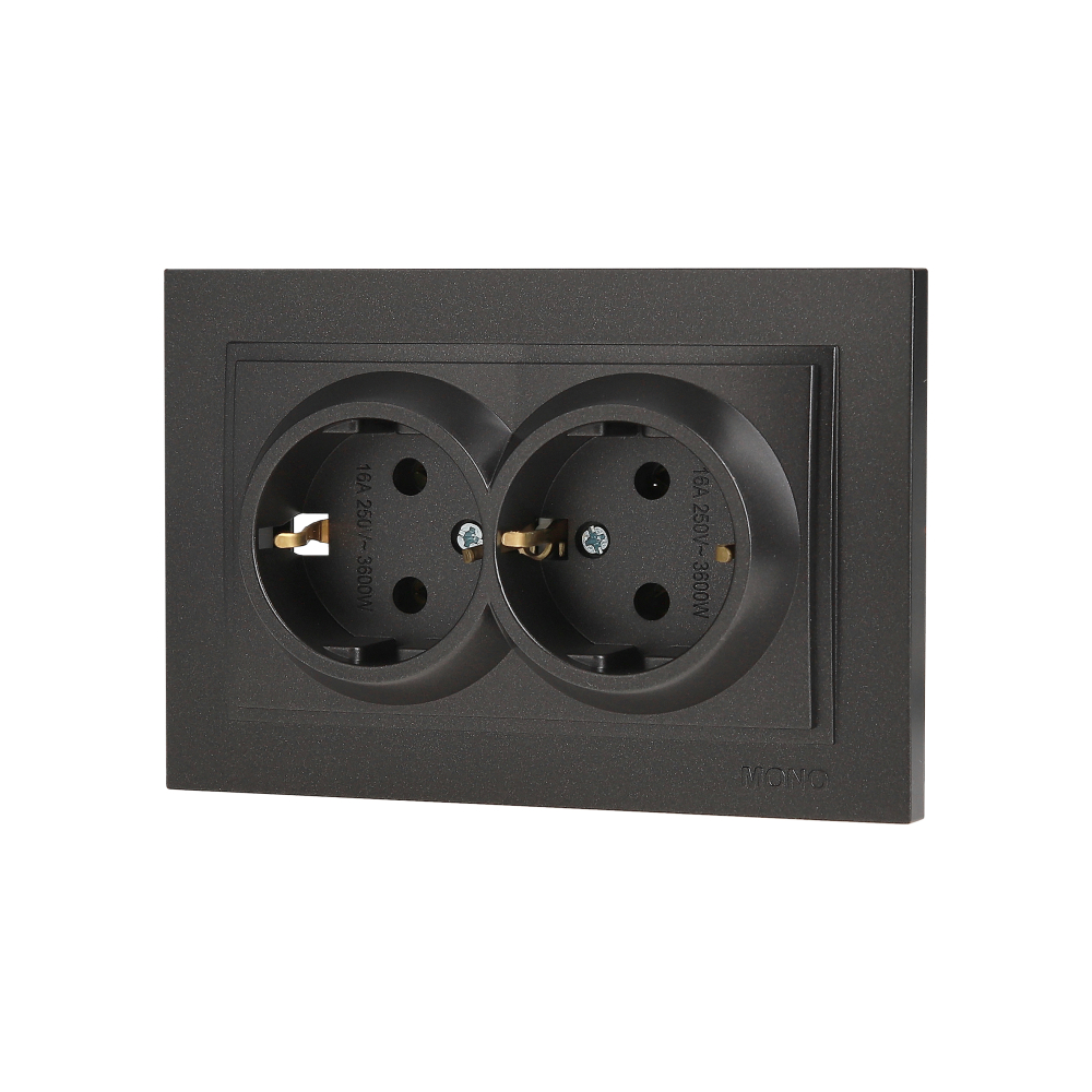 Розетка подвійна Mono Electric Despina із заземленням графіт (102-202004-120)