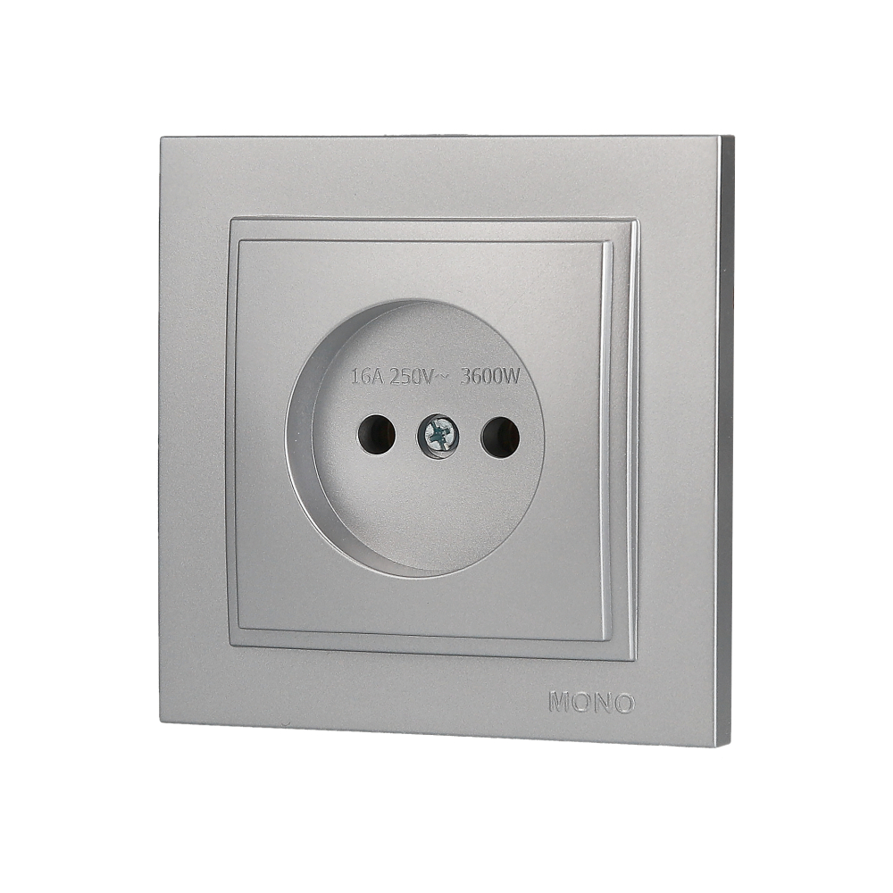 Тип виробу: Розетка; Тип розетки: Одинарна,Без заземлення; Кількість постів / модулів: 1 пост; Вологозахист (IP): IP20; Вхідна напруга, В: 220–250; Комплектація: Повний комплект (механізм + рамка + клавиша/накладка); Бренд: Mono Electric; Глибина, мм: 43; Колір: Срібло; Країна реєстрації бренду: Туреччина; Країна виробництва: Туреччина; Матеріал: ABS пластик; Монтаж: Прихований (вбудований); Номінальна потужність, Вт: 3680; Серія: Despina; Ширина, мм: 85; Сила струму, А: 16