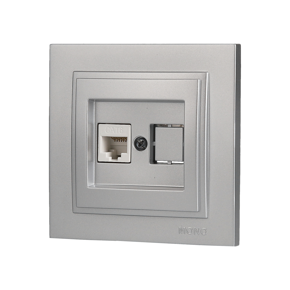 Тип виробу: Розетка; Тип розетки: Комп'ютерна; Кількість постів / модулів: 1 пост; Вологозахист (IP): IP20; Комплектація: Повний комплект (механізм + рамка + клавиша/накладка); Бренд: Mono Electric; Глибина, мм: 40; Колір: Срібло; Країна реєстрації бренду: Туреччина; Країна виробництва: Туреччина; Матеріал: ABS пластик; Монтаж: Прихований (вбудований); Серія: Despina; Ширина, мм: 85