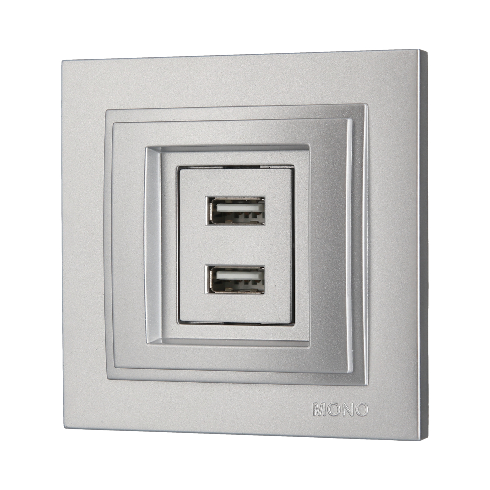 Тип виробу: Розетка; Тип розетки: USB; Кількість постів / модулів: 2 пости; Вологозахист (IP): IP20; Вхідна напруга, В: 220–250; Комплектація: Повний комплект (механізм + рамка + клавиша/накладка); Бренд: Mono Electric; Глибина, мм: 52; Колір: Срібло; Країна реєстрації бренду: Туреччина; Країна виробництва: Туреччина; Матеріал: ABS пластик; Монтаж: Прихований (вбудований); Номінальна потужність, Вт: 3680; Серія: Despina; Ширина, мм: 85; Сила струму, А: 16