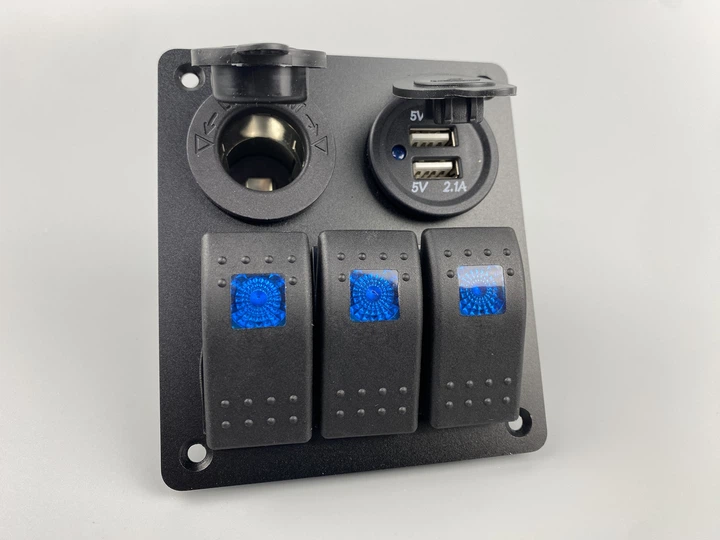 Панель перемикання на 3 кнопки з USB, вольтметр і розетка