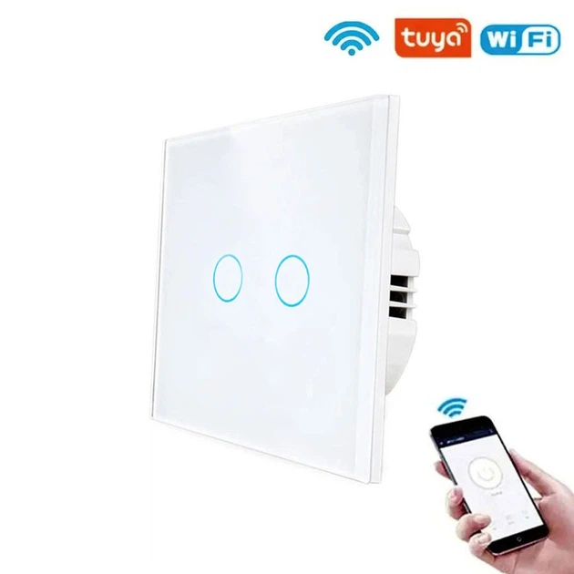 Сенсорний настінний смарт вимикач Tuya зі скляною поверхнею на 2 канали 220В, керування через телефон, підтримка пульта