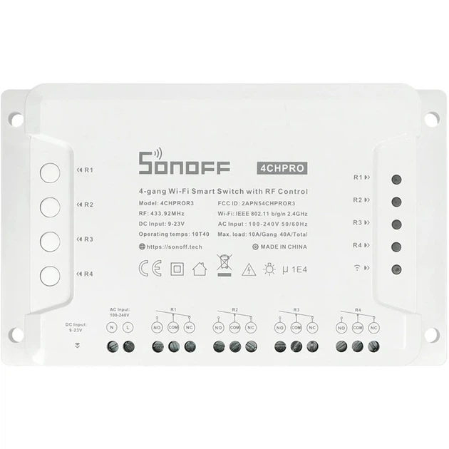 Розумний 4-канальний перемикач Wi-Fi Sonoff з керуванням RF433MHz