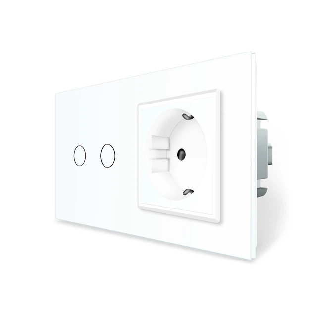 Розумний сенсорний EC вимикач 2 сенсора 1 розетка Livolo білий скло (VL-M7FC2Z2/FCTC16A-2WP)