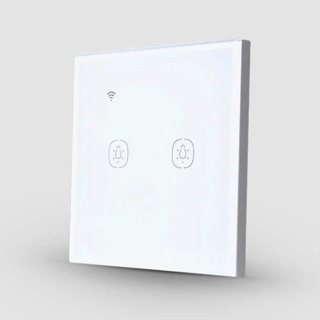Сенсорний WiFi вимикач Tuya (Білий, 2 клавіші) Без нульової лінії
