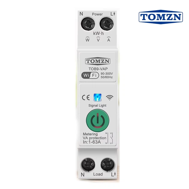 Розумний Wi-Fi автоматичний вимикач TOMZN TOB9-VAP 1P 63А DIN з моніторингом напруги струма енергоспоживання потужності, рел