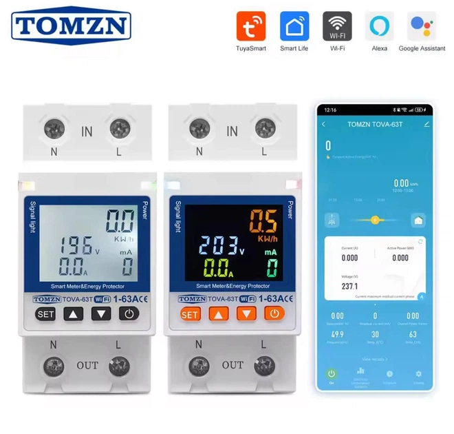 Розумний Wi-Fi автоматичний вимикач TOMZN TOVA-63T з мониторингом напруги струму енергоспоживання потужності, реле напруги т