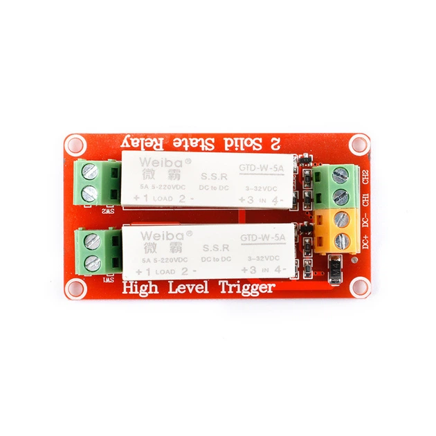 Модуль твердотільного реле 2 каналу 5А, DC-DC, високорівневий тригер, 3-32 В