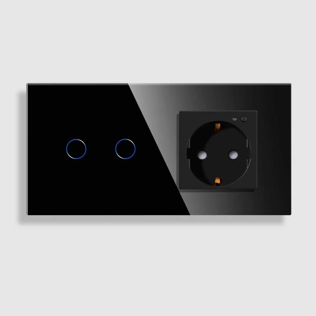 Вимикач та розетка Wifi комплект сенсорний Tuya smart (Чорний, 2 клавіші)