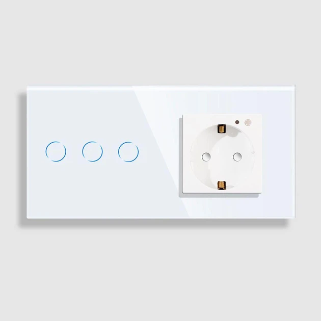 Вимикач та розетка Wifi комплект сенсорний Tuya smart (Білий, 3 клавіші)